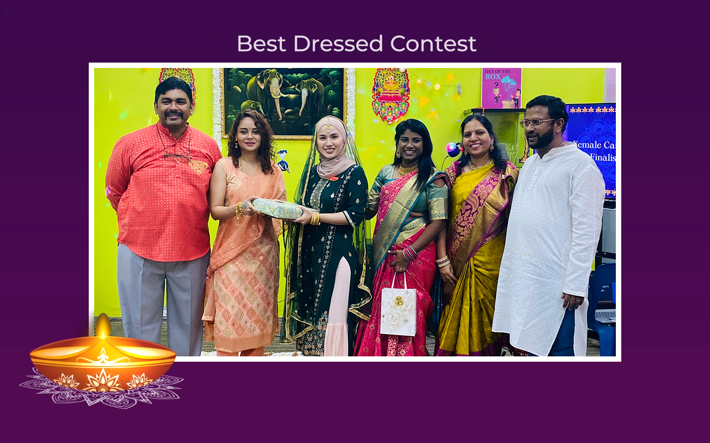 Once a year, we would have a best-dressed contest in the agenda of at least one event. Last year, we had it during our Malaysia Day Party. The year before, we had it during our Christmas Party. This year, we decided to have it during our Diwali Party! We did it a little bit differently this time. We decided to have separate winners for ladies and gents, so that we could have more winners!