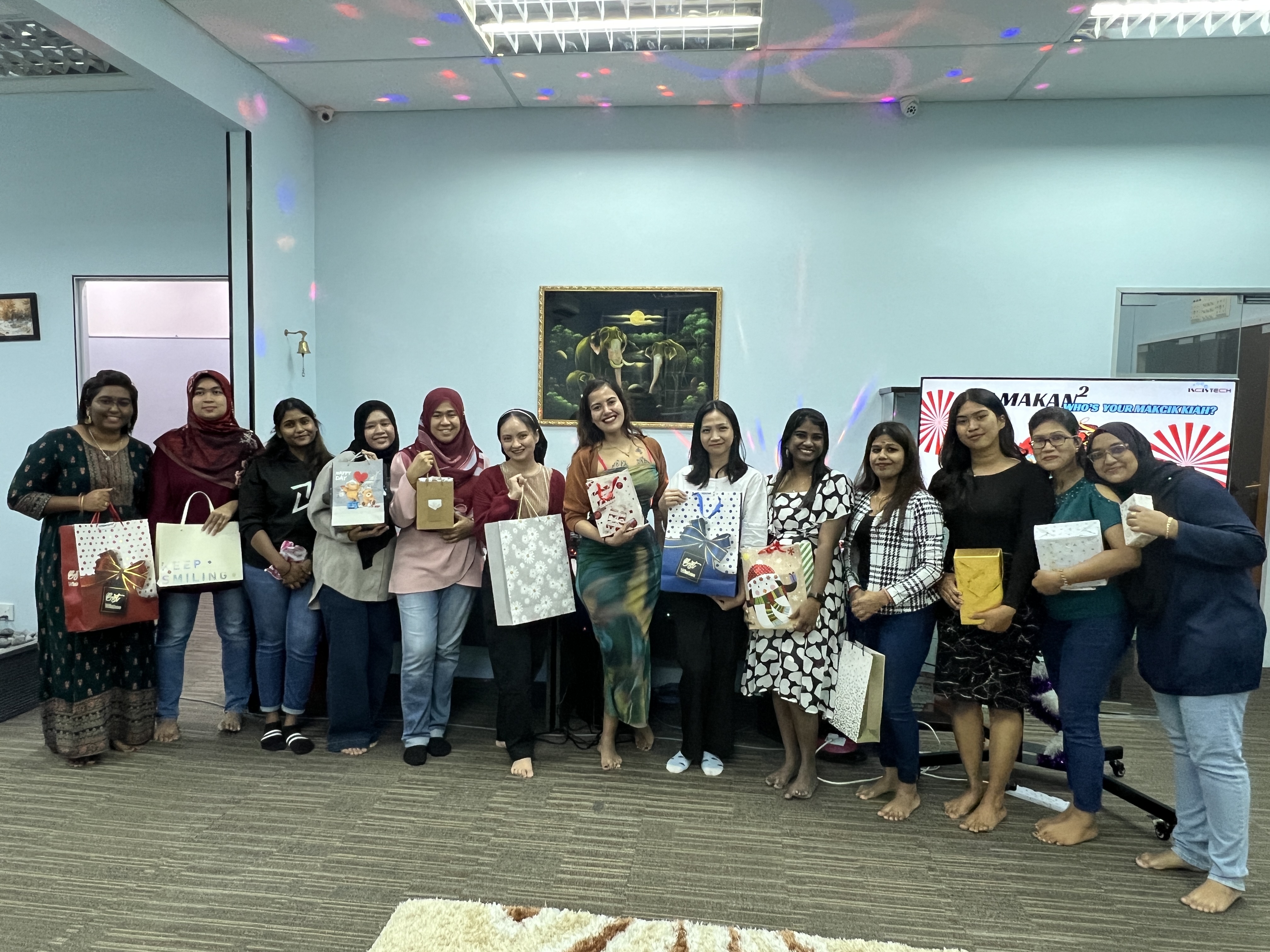 Salah satu yang menarik dari acara tersebut adalah sesi pertukaran kado misterius yang kami sebut "Siapa Mak Cik Kiah-mu?" - sebuah spin-off dari permainan Secret Santa yang biasa dimainkan selama musim Natal. Setiap anggota tim membawa kado yang telah dibungkus, dan ada antisipasi yang sangat terasa saat kami bertukar kado. Sebelum acara dimulai, kami mengundang Direktur Utama perusahaan induk kami, Bapak Ratnaganesh, untuk berbagi beberapa kata untuk menyemangati para karyawan, dan berbagi sejarah singkat tentang "Mak Cik Kiah".