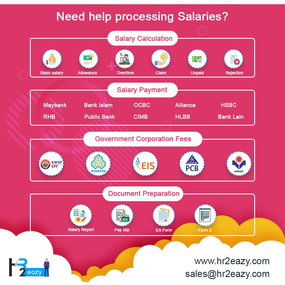 - EPF, SOCSO, EIS & PCB calculation and submission